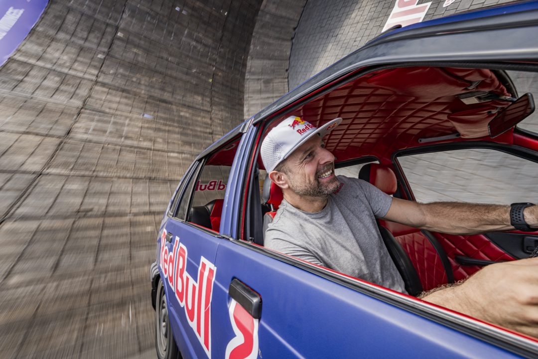 Abdo Feghali poses for a photograph in the Well of Death in Mumbai, India during the 2025 Drift Chase on October 10, 2025
