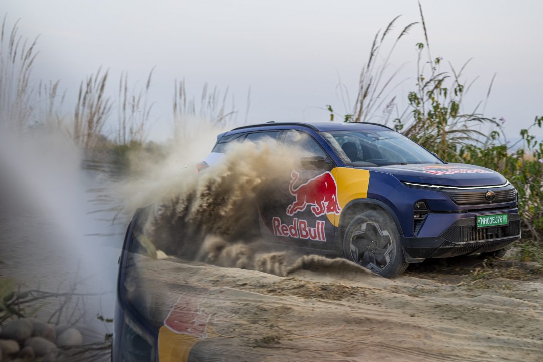 Abdo Feghali is seen in action driving the Tata Harrier.ev on the banks of the River Beas in Himachal Pradesh, India on November 18, 2025