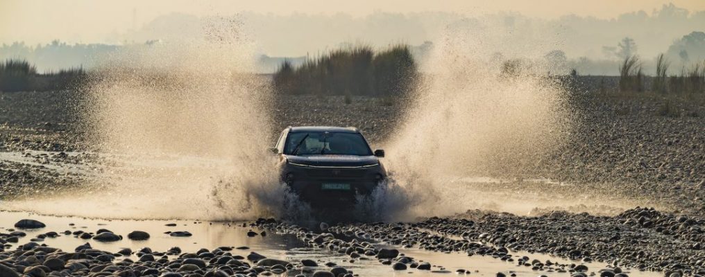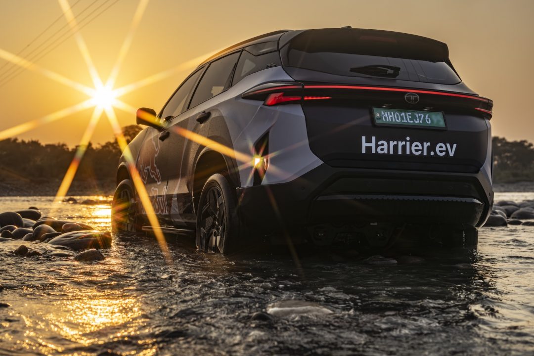 Abdo Feghali is seen in action driving the Tata Harrier.ev in the River Beas in Himachal Pradesh, India on November 19, 2025